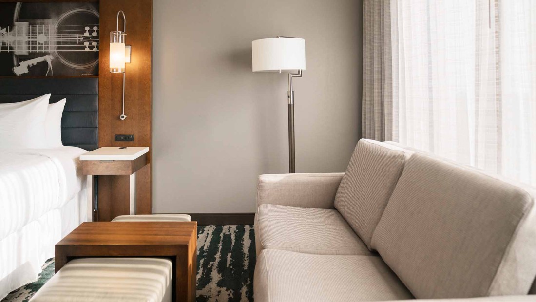 Experience refined comfort in our elegant Junior Suite, designed with both relaxation and sophistication in mind. The private bedroom features a luxurious king-sized bed with all-white linens and premium bedding, while the adjoining living area offers a stylish sofa and seating space, perfect for unwinding or hosting a quiet conversation.